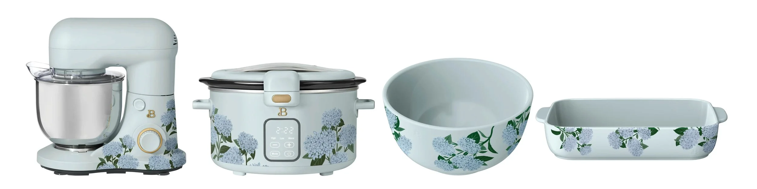 I developed, illustrated, and executed Beautiful’s Hydrangea Floral pattern. Working with printers, suppliers, and (of course) Drew Barrymore, I created a soft and elegant pattern that has been applied to kitchen electrics and stoneware. Sold exclusively at Walmart.