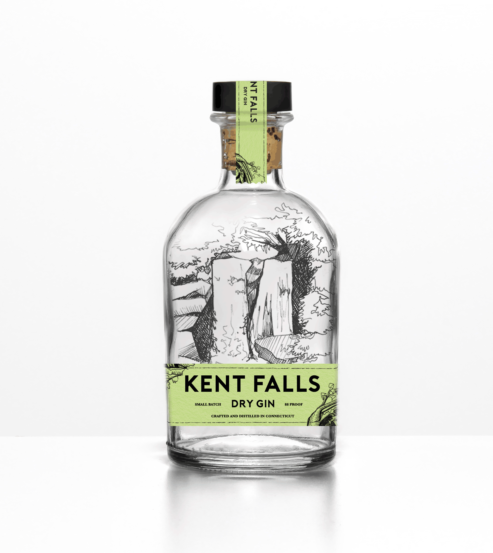Imagined gin brand based on CT local waterfall, Kent falls.